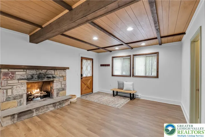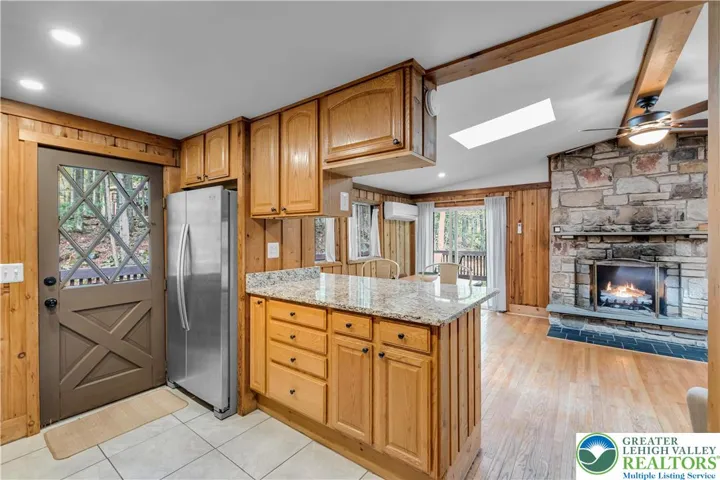 Mountain Charm meets Modern Living in this 4/5 Bedroom, Plus Bonus Room, Raised Chalet. Located on a beautiful, wooded lot in the amenity filled Community of Locust Lakes Village right in the Heart of the Poconos. Turn key vacation home, coming fully furnished! Two Stone fireplaces, (ventless propane inserts) warm up those chilly nights, providing beautiful ambiance and efficient heat. A large upper deck area perfect for Barbecues, enjoying morning coffee or an evening nightcap. Modern kitchen with granite countertops and stainless appliances (brand new dishwasher). Farmhouse bathroom upstairs with tile tub surround and quartz vanity. Rustic Hardwood floors throughout the upper floor. Unique and beautiful wood accents, grace the ceiling of the lower level. Dry bar with refrigerator in lower level rec room. Enjoy your hot tub for relaxing after a day of skiing, hiking, fishing, swimming at the lake or shopping. Lovely fire pit area and double driveway are additional loved features of this home. Community boasts 3 lakes, swimming, boating, sports courts, Chalet with community events, ski hill, sledding hill, golf cart and ATV friendly! Cross listed as a rental as well. Don't let this one pass you by! Set up your showing today!!