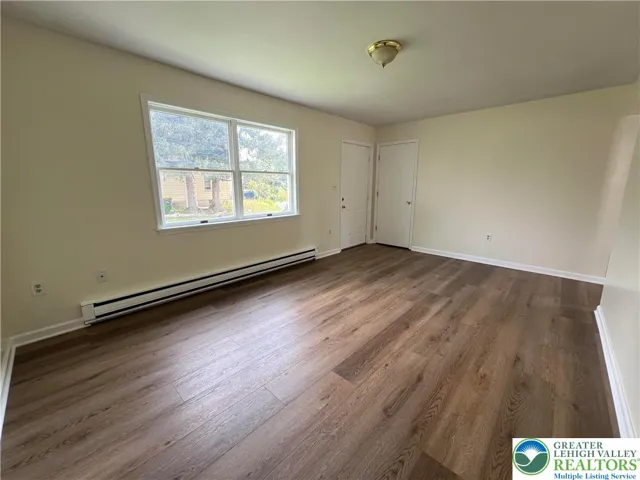 Cozy one floor apartment for rent in Upper Nazareth Township. Close to major routes and the Nazareth School complex. Apartment is the upper left side of building with two bedrooms, one bathroom, Living Room, large modern kitchen with dining area, and laundry/utility room. Amenities include attic storage, two car parking pad, electric baseboard heat, and new flooring throughout. Landlord pays water, sewer, and lawn care. Tenant pays electric, trash, snow removal, and renter insurance. One months rent and one months security. Rental application, credit check, and background check required for all occupants 18 years old+. No pets preferred but ONE indoor cat may be considered with additional deposit and fee- no dogs. No smoking/vaping. Immediate occupancy available.