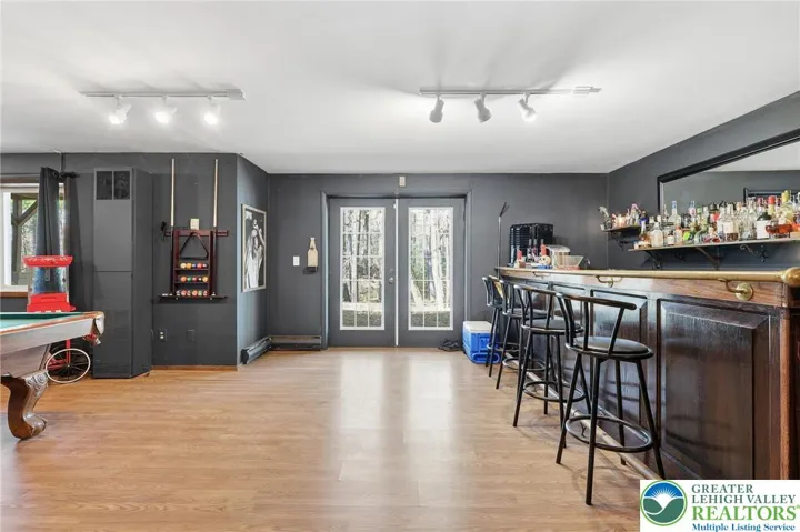 The privacy you have been waiting for has just hit the market! This ranch style home speaks multi generational living, primary residence, or vacation home, with 5-bedroom, 3 full-bath tucked in the Pocono Mountain Lake Forest community. Situated on a quiet cul-de-sac and surrounded by one acre of land, this property offers privacy, peace, and plenty of room to relax or entertain. Step inside to an inviting main level featuring an inviting living room, an ideal spot to enjoy memorable evenings by a wood-burning fireplace. The updated kitchen boasts stainless steel appliances and generous counter space, making it both functional and stylish and a dining room for formal dinners. The lower level is designed for fun and flexibility, complete with a game room, family room, full-size bar, and additional rooms perfect for guests, hobbies, or a home office setup. Both levels have sliding doors going out to the backyard to enjoy nature, a bbq, or a nap on a hammock Enjoy all the benefits of Pocono Mountain Lake Forest living, including community amenities, scenic surroundings, and close proximity to area attractions, state parks, and major commuter routes. This spacious ranch delivers the best of mountain living with room for everyone!