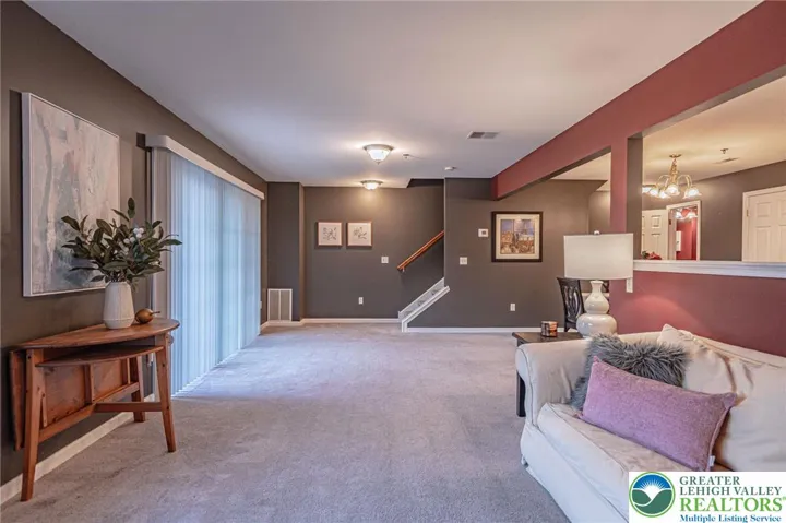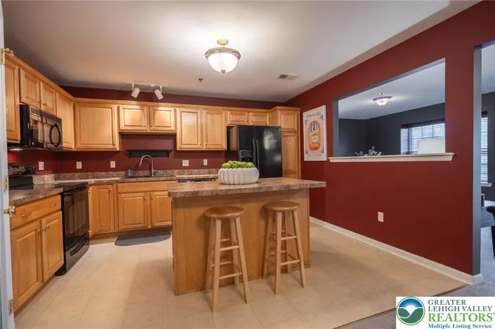 Discover comfortable, low-maintenance living in this well-cared-for, multi-level condominium, located in Penns West, within the East Penn School District. Offering over 1,600 square feet and two bedrooms—each with its own private full bath—this home provides a practical layout ideal for everyday living. The main living level features an airy, open floor plan where the living and dining areas connect naturally to the kitchen. A center island makes meal prep and casual dining easy, and a nearby powder room adds convenience. Sliding doors lead to a generous balcony, creating a perfect spot to relax outdoors with your morning coffee. Upstairs, the primary bedroom suite includes a 7’ x 6’ walk-in closet and an ensuite bathroom complete with a walk-in shower. The second bedroom also features its own full bath with a tub/shower combination. A full laundry room with washer and dryer, plus additional storage, completes the upper floor. Everyday practicality continues with an extended 1-car garage offering interior access, and extra parking available in the community lot. Major updates include a roof replacement in 2019 (covered by the condo association) and a regularly serviced HVAC and heat pump upgraded in 2018. Residents of Penns West enjoy a true lock-and-go lifestyle with snow removal, lawn care, and access to a clubhouse, fitness center, swimming pool, and tennis and pickleball courts. Schedule your visit and come see the ease of condo living and this convenient location!