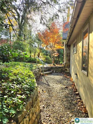 Located within the sought-after Pine Top Trail neighborhood, this storybook home is full of delightful surprises. Originally a one-room schoolhouse, it has been thoughtfully expanded and updated for modern living. A covered porch invites you inside, where a warm foyer showcases solid oak floors and extra-deep window sills. From here, a hallway leads to an inviting living room (or potential bedroom) anchored by a striking stone fireplace, custom cabinetry, and Bradbury & Bradbury wallpaper. The dining room—finished with chair-rail molding and wallpaper wainscoting—sits just off a charming kitchen featuring a newer refrigerator, crisp white cabinetry, and a coordinating gray countertop and backsplash. Upstairs, you’ll find two generously sized bedrooms and a full bathroom linen closet. The home’s expansive addition creates an unforgettable two-story great room with radiant-heated floors, wood-burning fireplace, and antique leaded-glass windows. A spiral staircase ascends to a versatile loft—ideal as a home office, fitness area, or game room. This space also includes a wet bar with dishwasher and a full bathroom. Outside, the courtyard patio features a mosaic of the tree of life. The backyard blossoms with thoughtfully curated plantings that bloom in succession throughout the seasons. Mature trees—including several vibrant Japanese maples—along with native perennials thrive within stone-walled garden beds, creating a serene and enchanting outdoor sanctuary.