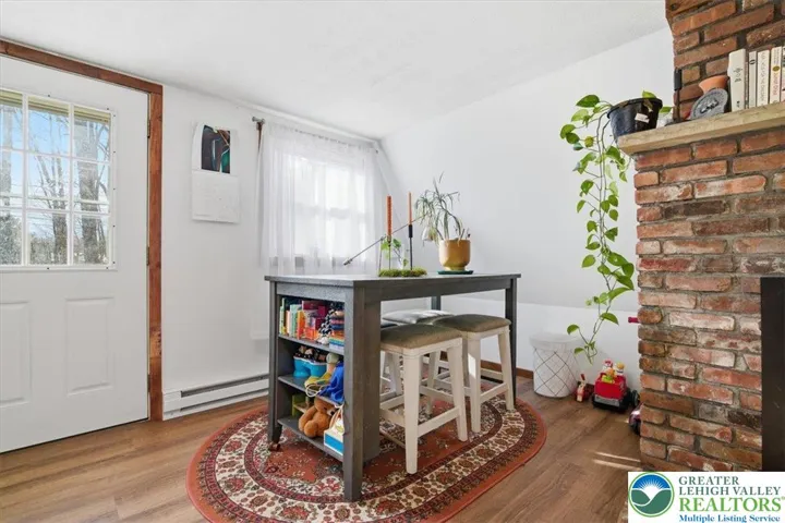 This cute well maintained unique A frame home offers 2 bedrooms, 1 bath nestled on a private 1.73 acre lot in the Pocono Mountains! Enjoy cooking in the modern kitchen with butcher block countertops, subway white tile backsplash and the large brick faced fireplace with a pellet insert to keep the home nice and warm. Enjoy relaxing in the family room with a view of all the natural beauty of each season. A nice sized bedroom, a modern full bath and laundry area complete the first level. The second level offers a master bedroom with vaulted ceilings, sitting area and closets. The oversized detached garage offers plenty of storage. Located near shopping, skiing, State Games land for all your adventures. Call today to schedule your private showing of this super cute home!