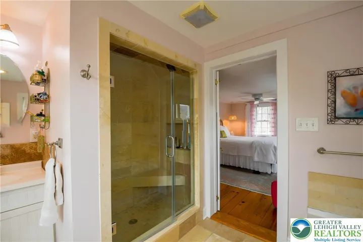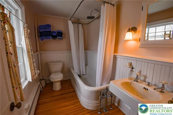 garage with an artist’s studio provides a dedicated space for an office and creative pursuits. The home’s modern comforts, including a full-house generator and a specially designed dog room with a heated floor and doggie door. Turnkey and immaculate with high-quality finishes & fabulous charm. There is an electric gate with generator back-up providing security and uninterrupted access. Updated and enhanced with love and care, the home offers two wood burning stoves, multi-zoned heating and cooling and a first-floor office. The new Elmira Period kitchen appliances add a touch of vintage charm with modern functionality. With all the charm of a Bucks County Inn, there are 4 BR & 3 baths. The cozy third floor bedroom, tucked under the eaves will have guests and children vying for their space. Outside, an established orchard features a variety of fruit trees & garden. Relax and enjoy the sounds and sights of this very special back yard oasis.