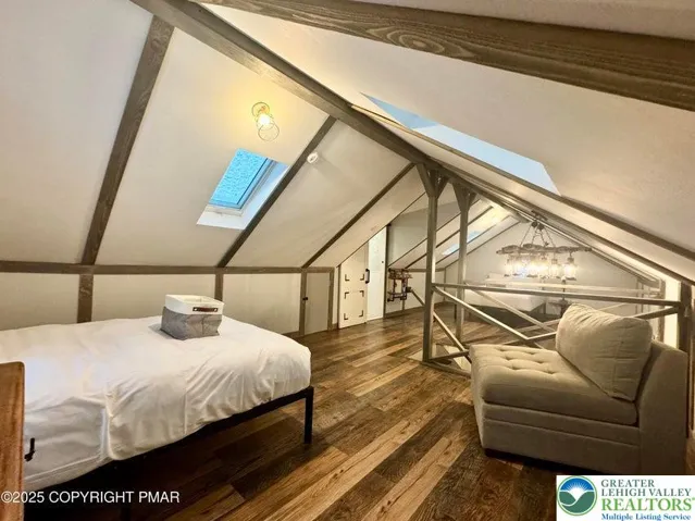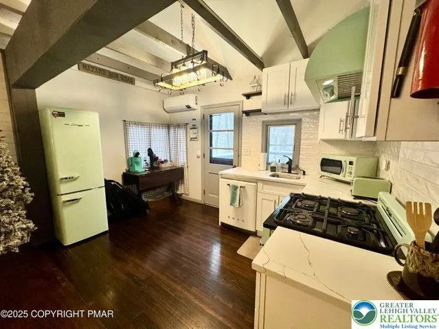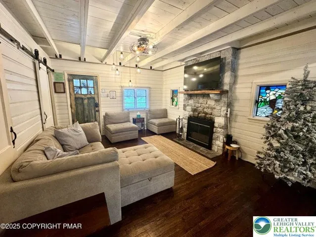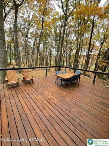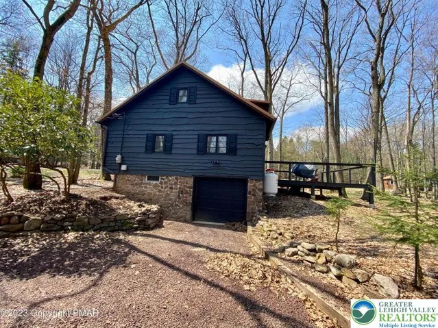 Tucked into the woods of Split Rock just a short walk to Lake Harmony, this gorgeous Cabin feels like the perfect Pocono escape. Warm, welcoming, beautifully finished, it offers the charm of a classic mountain retreat with the ease of true turn key living. A cozy wood burning fireplace anchors the main living space, while vaulted ceilings, skylights, and natural light create an open, airy feel throughout. The kitchen is full of character with retro appliances, thoughtful details, sliding barn style doors that add both function personality. Two bedrooms updated full bath are located on the main level, while upstairs a Loft offers two additional Beds and a beautifully tiled half Bath, creating a flexible space for guests or family. Step outside to enjoy multiple Deck areas, a Fire Pit just off the side deck, and a private Corner lot that backs to the tennis court area, Walk to Lake Harmony, hike to the iconic Split Rock, or enjoy the unbeatable location between Big Boulder night skiing and Jack Frost day skiing, now part of Vail Resorts. Two nearby golf courses. Behind the scenes, this home was taken down to the studs and completely rebuilt in 2022. Updates include spray foam insulation in the roof, updated electric, removed walls for a more open layout, and recently installed efficient split systems providing economical heating, air conditioning. Entire home has been thoughtfully renovated from top to bottom has been a successful short term rental for the past three years.