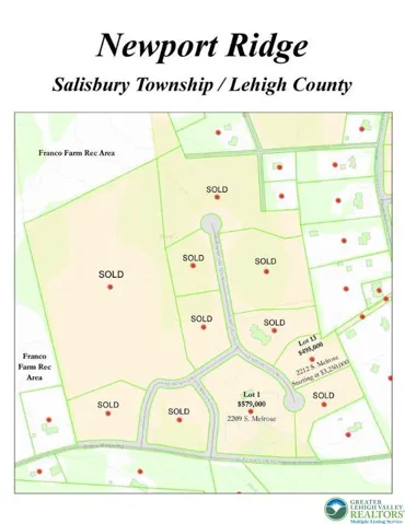 Myron Haydt, winner of the Top Pennsylvania Custom Home Builder Award, offers this custom home package for homeowners who require nothing less than extraordinary quality, design and location. Meticulously designed, the 5700 square foot luxury home boasts a rare combination of beauty and functionality. A massive great room includes the kitchen, with dual islands and seating for five, top- of-the- line appliances, and windowed breakfast room as part of a sun-kissed family room with fireplace and generous built-ins. A wall of doors from this great room opens to an elegant 32’ covered porch – perfect for elegant garden parties, barbecues or dinners al fresco. A generously sized dining room and a study flank the 2-story foyer. Multiple walk-in closets, butler’s pantry, full bath, a walk-in pantry and wood floors are the hallmarks of the first floor. Two wide staircases access the second floor. There are 4-bedroom suites and laundry. The primary suite has a wall of windows and massive walk-in closet with island, second walk-in closet and sumptuous bath with oversized shower and a soaking tub. This 2-acre lot is one of only two remaining lots in the award-winning neighborhood of Newport Ridge. The land offers plenty of room for pools and sports courts, all within an easy drive to Bethlehem, Allentown, New York City, Philadelphia and New Jersey. Adjacent is Black River Sanctuary, w/ 187 acres in Salisbury & Upper Saucon townships, & seven different trails, covering 3 miles