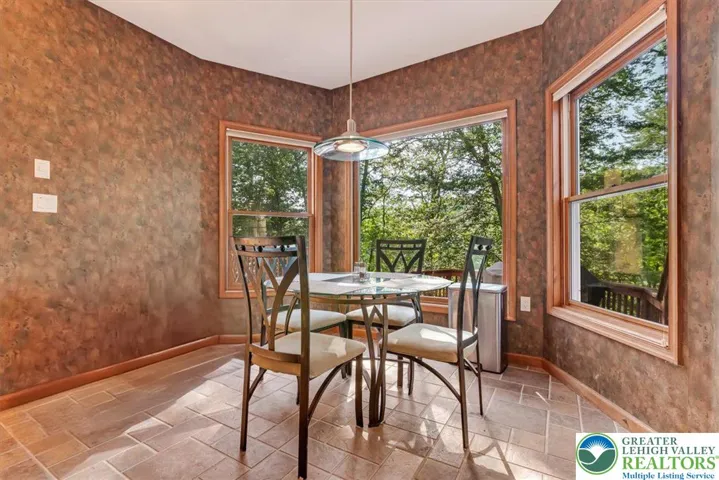 Lakefront home can be used as primary or STR, Well built very spacious 5 bedroom home, designed for both everyday comfort and effortless entertaining. Inside, you'll find soaring ceilings, solid wood doors, and gleaming hardwood and tile floors. The family room features a beamed ceiling and a full-wall brick fireplace, while skylights flood the living room with natural light. The primary suite offers a cozy gas fireplace, Juliet balcony, and serene lake views. The walk-out lower level is built for fun, with two sets of sliders to the patio, a full wet bar, game room, mirrored home gym, and full-size sauna. Outdoor living shines with multi-tiered decks, a screened porch, two upper balconies, and a lakeside patio—all overlooking sparkling Blue Mountain Lake. This property is perfect as a primary home, vacation getaway, or income-producing rental, with Airbnb and short-term rentals permitted. Best of all, it's just minutes from downtown Stroudsburg, East Stroudsburg University, shopping, dining, hospitals, and every convenience. Commuters will love being only minutes from Interstate 80 and the Delaware Water Gap Bridge, making this a rare blend of lakefront serenity and commuter-friendly access.