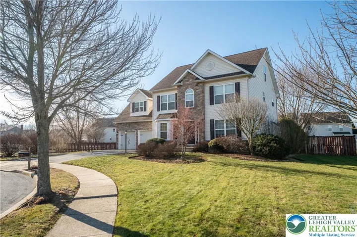 ***Multiple Offers Received. Offers due by 9PM Saturday, 1/10*** OPEN HOUSE CANCELLED. This beautifully maintained 4-bedroom, 2.5-bath colonial in desirable Forks Township is the former Sycamore Model in Lambert Estates and offers timeless design with thoughtful upgrades throughout. Located on a quiet cul-de-sac, this family friendly home is just steps from scenic walking and biking paths that lead to the community center. Originally built with a flexible floor plan, the home features a spacious bonus room over the garage—perfect as a fourth bedroom, home office, or media room—along with a walk-up attic for additional storage. The inviting family room is highlighted by a gas fireplace and opens to a well-appointed kitchen with center island and quality finishes. Hardwood flooring enhances much of the main level, including the foyer and dining room, which features crown molding and chair rail. The primary suite offers a private retreat with a walk-in closet and en-suite bath with Jacuzzi tub. A finished lower level provides additional living or recreational space. Outside, enjoy a large fenced-in yard ideal for entertaining, pets, or play. Additional highlights include a 2-car garage and a prime location close to parks, shopping, and major routes. A wonderful opportunity to own a move-in-ready home in a sought-after neighborhood.