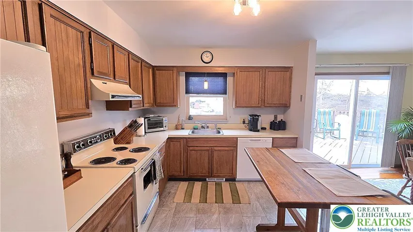 Upstairs, the spacious primary bedroom features a generous wall of closets and an updated en-suite bathroom with new fixtures. The second bedroom also benefits from new luxury vinyl flooring. Both the main bathroom and shower surround are fully tiled, as are the foyer and second-floor landing. The oversized one-car garage provides an insulated door, and convenient exterior access. Ample basement storage houses the laundry area, electric hot water heater, and heat pump. Key updates include a 200 Amp electrical service and replacement windows installed in 2006. Schedule your showing today! Home has a clear Whitehall C.O.