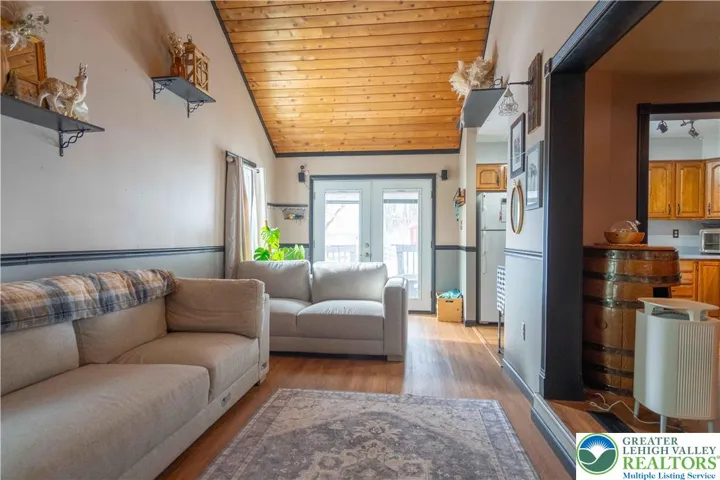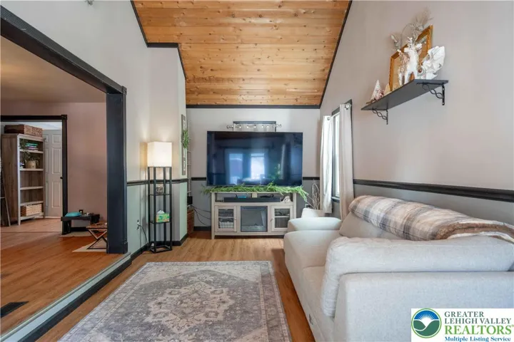 The charm is apparent the minute you open the front door. Cozy living room opens to a nice sized dining room and on into the very workable and modern kitchen, (dishwasher and refrigerator included). The bonus is the VERY large family room with vaulted ceilings
