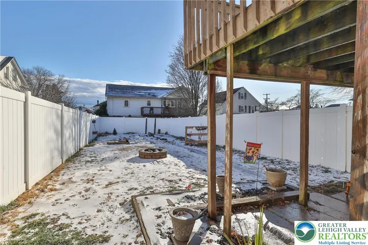 Outside, enjoy a fully fenced rear yard with a covered patio, elevated deck, and fire pit—ideal for entertaining or relaxing. Conveniently located in Nazareth Borough near local shops, schools, parks, and major commuter routes, this home offers character, flexibility, and outdoor living in one complete package.