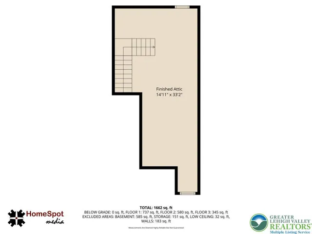 The third level features a large finished attic (approx. 14’11” x 33’2”), offering versatile space for a bonus room, media room, or playroom.