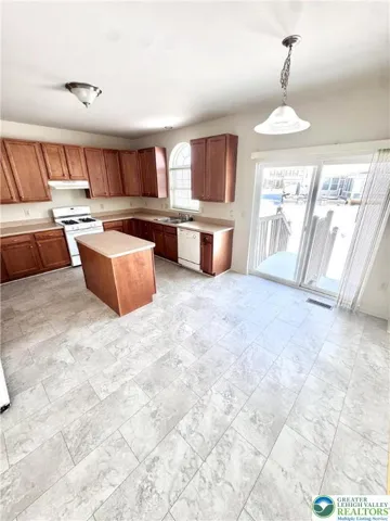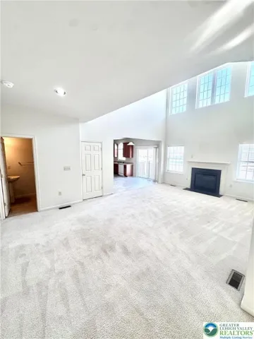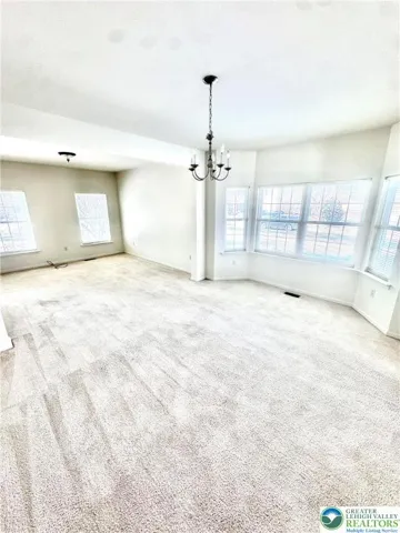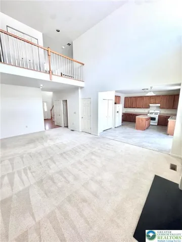 Whispering Farms FIVE BEDROOM HOME located in PARKLAND SCHOOLS! First floor is complete with one bedroom with full bathroom, laundry, large family room with fireplace, dining room and eat-in kitchen! Second floor with four additional bedrooms overlooks the first floor with open concept with high ceilings and sunny windows. Bonus is the two car attached garage and spacious unfinished basement for plenty of storage. Home has economical gas heat and tenant to pay all utilities. NO PETS please!