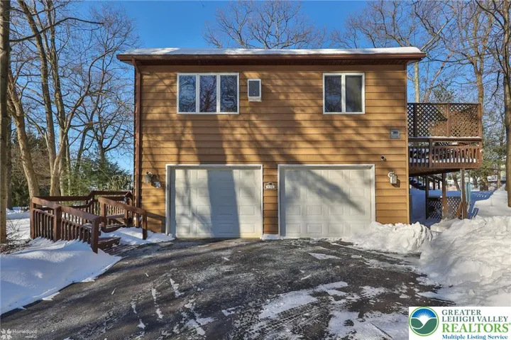 Tucked away in a quiet neighborhood sits 536 Carol Lane. This well-maintained home features many updates by the current owner and rests on a spacious .68 corner lot surrounded by trees and nature. Inside, enjoy numerous upgrades starting with the open 2-story foyer leading to a generously sized living/dining room combo. Neutral paint and large windows fill the home with natural light. The 2025 kitchen offers custom soft-close cabinetry, quartz counters, specialty tile backsplash, 2024 GE appliances, and an oversized custom window with expansive views. French doors from the dining room open to a large deck—perfect for morning coffee or evening wine. The primary and guest bedrooms are nicely sized with fresh paint, new carpet in two rooms, and ample closets. The full hall bath includes a double vanity. The lower level features a large family room with a cozy wood stove and glass slider to the patio. A convenient laundry room with newer washer/dryer, half bath, patio access, and entry to the two-car garage adds ease. Off the newly rebuilt driveway is a large electric shed, ideal for workspace or storage. Ample driveway and gravel parking complete this lovely home. Enjoy peaceful walks, friendly neighbors, and a school bus stop just around the corner.