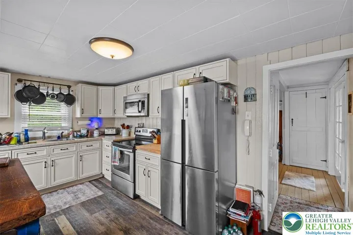 Turn-of-the-century farmhouse on over an acre, featuring a historic barn showcased on the Towamensing Township Barn Tour! Ideal for homesteading, the property includes a 12x16 covered back porch, raised garden beds, and a diverse fruit orchard with raspberries, blueberries, grapes, cherries, and apple, plum, peach, and pear trees. Add a few chickens and create your own farmette. The home offers a spacious living room, formal dining room, kitchen, family room, and first-floor laundry with half bath. Upstairs includes three bedrooms and a full bath. The roof was replaced in 2020, the water heater in 2023, and several windows throughout the house were recently replaced. There is ample storage throughout, including a walk-up attic, dry basement, 30x50 two-story bank barn with two stalls, 12x30 cold storage building, oversized heated two-car garage with full second floor, 16x24 heated workshop, and 8x10 shed. A 6-circuit transfer switch powers the home with an emergency generator when needed. Located less than 10 minutes from Beltzville Lake's boat launch, beach, and recreation areas (powerboats welcome!), and just 15 minutes to the PA Turnpike.