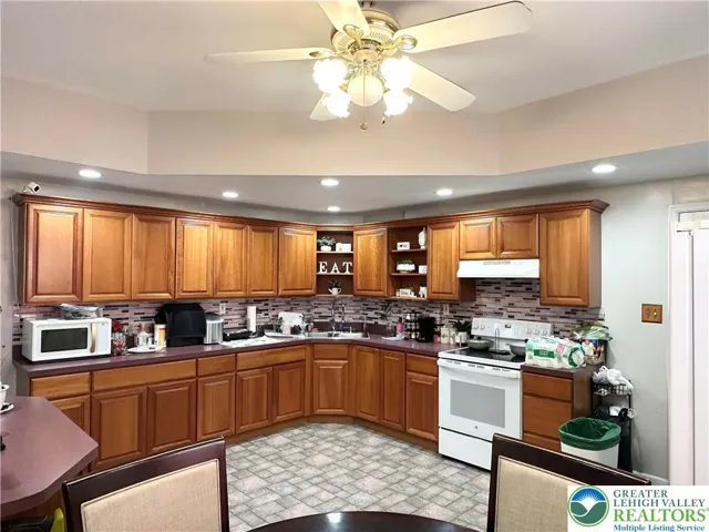 Turnkey Ready! Come see this beautiful very spacious 5-bedroom 2 full bath End unit in center city Allentown. Featuring over 2,100 sq ft this home has all the space you need. Upon entrance you will love the huge living room and dining room combo with beautiful, tiled floors. Large Eat-In kitchen with lots of cabinets. Full bathroom on the first floor with stand-up shower. Upstairs you will find a large primary bedroom, another bedroom that's being used as a huge walk-in closet that can be converted back into bedroom. Another large beautiful tiled full bathroom. Laundry room on the 2nd floor. 3 other spacious bedrooms with wall-to-wall carpet and vinyl flooring on 2nd and 3rd floor. Fenced in back yard. 3 car garage for lots of off-street parking and storage. This home will not last schedule your showing today.