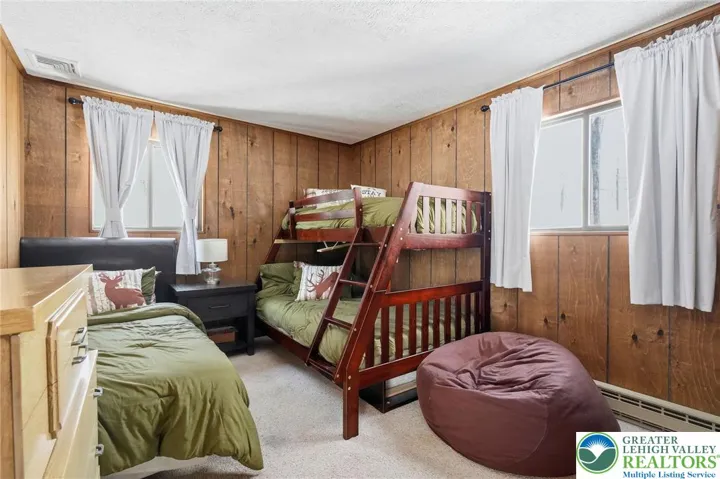 The private primary suite features its own full bath, large closet, and sliding doors leading to the wraparound deck. Set on a 0.81-acre corner lot, the home also includes a one-car garage plus ample storage in the attic and crawl space. A true Pocono escape with comfort, charm, and room to breathe. Timber Trails gated community has many amenities including a clubhouse, teen center, fitness center, tennis courts, playground, indoor and outdoor pools, golf course, and outdoor ice skating. ALSO within Timber Trails: Tall Timber Lake Access, a beach and playground area!