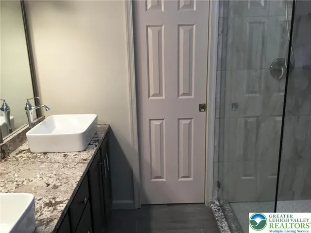 One of the Mountain View Condos is finally available. Just a short distance from Downtown Emmaus(voted one of the best towns to live in the USA), you can walk to shops, movie theatre and restaurants. Quiet setting that borders the park and mountain, this beautiful home offers an open concept first floor living and dining area with hardwood floors, living room w/woodburning fireplace, french doors from dining room to well placed Sunroom with plenty of windows and skylights. Kitchen has been updated with new appliances and granite countertops. First floor laundry and upgraded half bath complete a well designed first level with perfect flow opening to a large deck with park and mountain view. Upper level offers two large bedrooms with walk in closets and two private baths. The Primary Bedroom bath is gorgeous with updated double vanities and walk in shower w/ beautiful glass doors and skylight. The full basement and one car garage(w/ extra storage above) give you more room for recreation and storage. This beauty won't last long.
