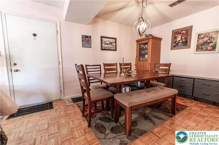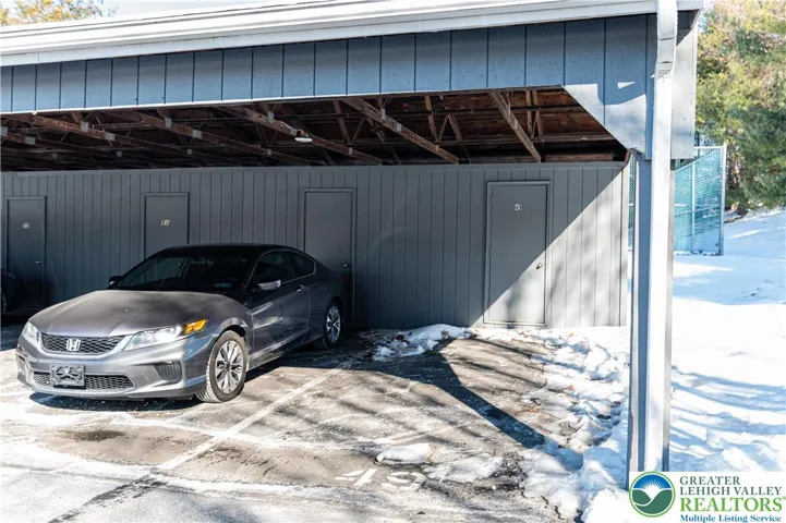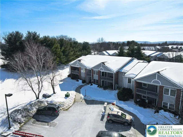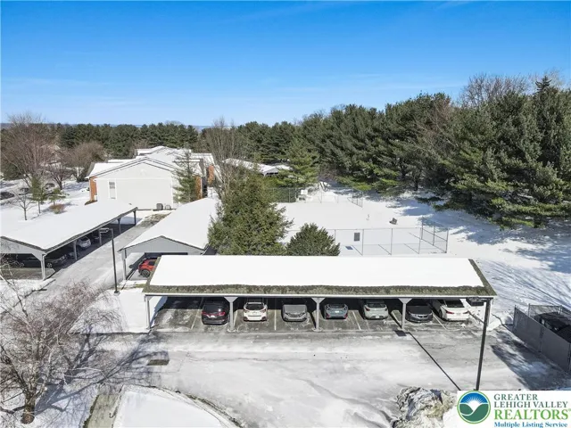 Welcome to this inviting 2-bedroom, 2-bath condo offering comfort, convenience, and easy living. A covered entryway provides shelter from the elements and leads you into a bright, open-concept layout that feels warm and welcoming from the moment you step inside. The family room features plush carpeting and elegant glass French doors that open to a private patio, creating a seamless indoor-outdoor flow. A spacious dining area easily accommodates seating for eight, making it ideal for holiday gatherings and entertaining. The fully equipped kitchen includes matching white appliances and track lighting, offering both functionality and style. Both bedrooms feature wall-to-wall carpeting, with the primary suite boasting a full bath with a walk-in shower and sliding glass doors. A second generously sized bedroom, a full hallway bath with a tub/shower combo, and a convenient laundry room with organizational shelving complete the interior. Outside, enjoy a covered concrete patio—perfect for relaxing and soaking up the sunshine. The home is further enhanced by a 2 dedicated spots (1 covered parking pad plus 1 parking spot, providing ample parking options for residents and guests alike. Conveniently located close to major highways US-22 and PA-33 for easy commute, Lehigh Valley International Airport, Crawford Park, shops, restaurants and so much more! *PLEASE NOTE: SALE IS CONTINGENT UPON SELLER FINDING SUITABLE HOUSING*
