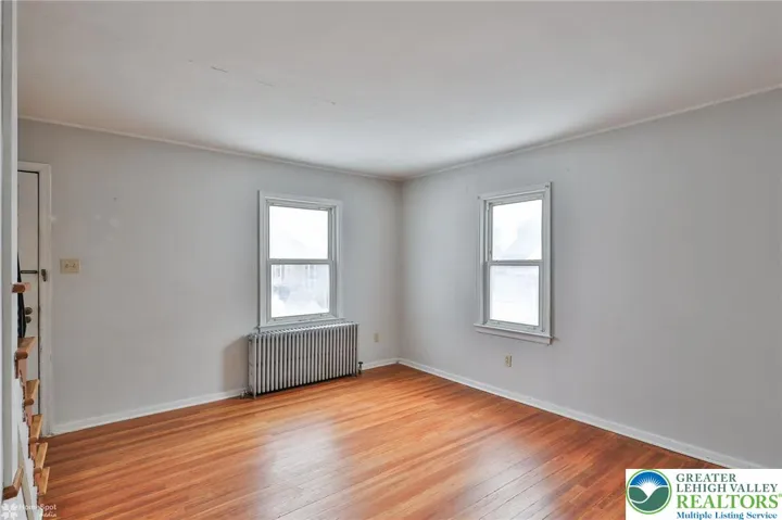 Located in Salisbury Township, this single home offers 3 bedrooms, one conveniently on the first floor, along with 1 full bath, a living room, dining room, and a kitchen with gas cooking and windows overlooking the backyard. Hardwood floors run throughout the first floor, and the home features gas heat, gas hot water, and a full basement with an exterior entrance leading to the covered patio and backyard. The basement offers the potential to be finished if additional space is needed. The home is currently livable with one bedroom, and the upstairs bedrooms will need electric heat added. A perfect chance to renovate and create the style you want. Outside, enjoy a fenced yard, covered patio, and parking for two cars, all while being close to schools, shopping, and just 10 minutes from I-78 for easy commuting. Property being sold as is.