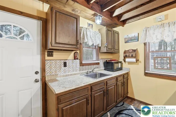 Located just 15 minutes from Gouldsboro State Park and only 25 minutes to the shores of Lake Wallenpaupack, Indian Country offers the perfect blend of recreation and relaxation. This amenity-filled community features a clubhouse, playground, swimming pool, fishing lake, and a year-round bath house for residents and guests to enjoy. Tucked among the trees, you'll find this charming, fully furnished cabin in the woods. The cozy interior offers an open living room, three bedrooms, and one bath—ideal for weekend getaways or seasonal escapes. The cabin is move-in ready, allowing you to start enjoying it right away. The property uses the community's seasonal water hookup during the warmer months and functions as a dry cabin in colder months, while being serviced year-round by an independent septic system. Whether you're looking for a peaceful retreat or a base for outdoor adventures, this quaint cabin is a wonderful opportunity to own your own slice of the Pocono Mountains.