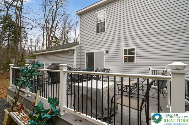 Nestled on a quiet cul-de-sac in the highly desirable Pocono Farms community, this charming 3-bedroom, 2.5-bathroom home offers the perfect blend of serene privacy and active community living. As you approach, the home's exceptional curb appeal is immediately apparent, featuring new masonry stonework on the front exterior. Step inside to discover a warm and inviting living space, centered around a cozy wood-burning fireplace—ideal for relaxing evenings. The well-appointed kitchen provides easy access to one of the home's standout features: a massive deck that provides a private and peaceful woods view creating your own retreat for entertaining or quiet contemplation. The primary bedroom is a true owner's suite, complete with a walk-in closet and a private master bathroom for ultimate convenience. Two additional bedrooms and another full bathroom provide ample space for family or guests. Practicality meets convenience with an attached 2-car garage, equipped with extra storage and shelving, and an additional shed on the property for all your storage needs. This home isn't just about the property—it's about the lifestyle. As a resident of Pocono Farms, you will enjoy access to a wealth of premier amenities, including private lake and beach access and membership to one of the Northeast's finest golf courses. This is a rare opportunity to own a home that offers both a private escape and a vibrant community experience.
