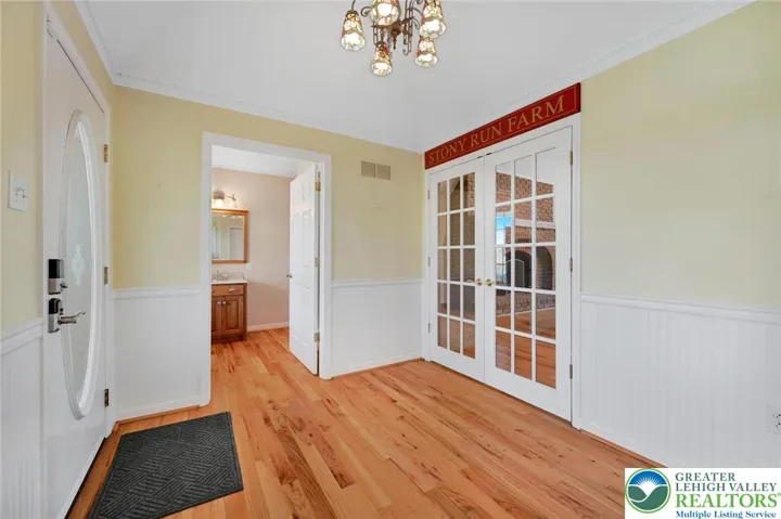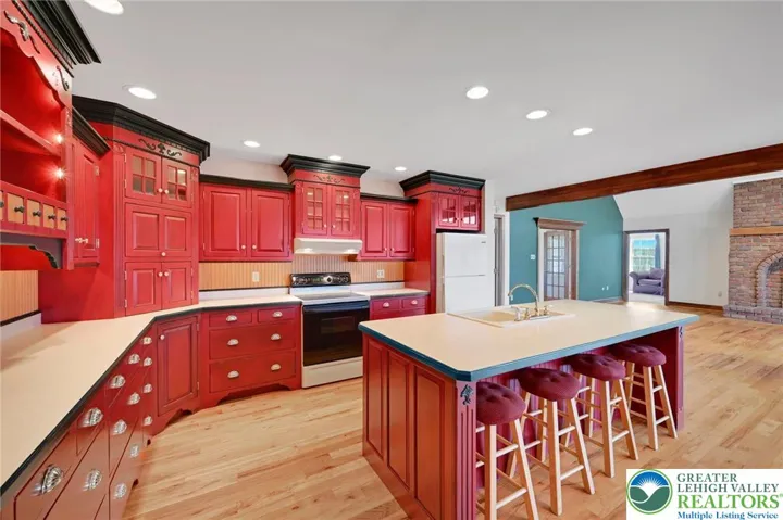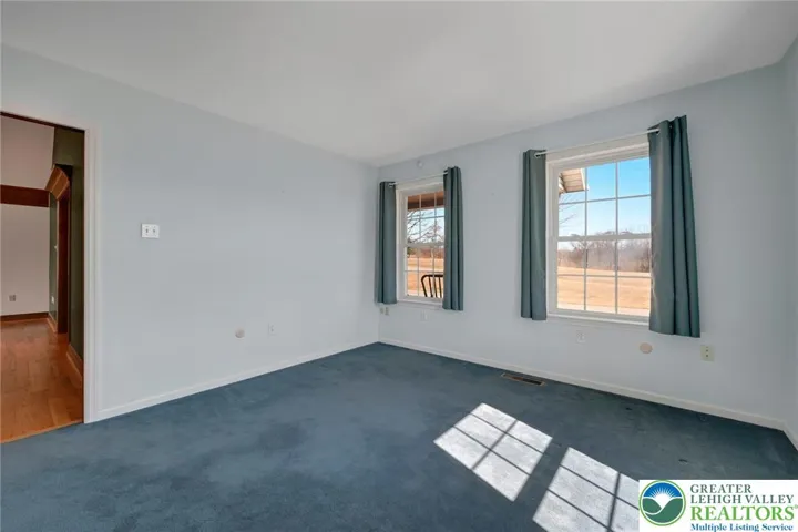 Back on the market due to unforeseen family circumstances — don’t miss this rare second opportunity to own a stunning retreat overlooking Hawk Mountain! Situated on 15+ private acres with panoramic views in every direction. Enjoy spectacular sunsets through floor-to-ceiling living room windows and peaceful sunrises from the covered front porch. Three brick patios offer ideal outdoor entertaining space. Acreage is currently leased annually to a local farmer (soybeans, sunflowers, wheat). Continue lease for added income, subdivide (verify with township), add outbuildings, create a vineyard/hobby farm, or preserve the privacy. Open-concept great room features custom wood-burning brick fireplace with oversized mantel. Flows into dining area and beautifully appointed kitchen with crown molding, glass-front cabinetry, cabinet lighting, built-in microwave shelf, and large center island. Spacious laundry room with custom cabinetry (potential walk-in pantry). Private primary suite at rear with sunset views, walk-in closet, and full bath. Three additional bedrooms and three additional full baths. Attached garage with staircase to unfinished space above (future expansion potential). Basement offers finished office/possible 5th bedroom with nearby full bath plus additional unfinished space ideal for rec room or in-law suite. A true lifestyle property offering privacy, flexibility, and unforgettable views.