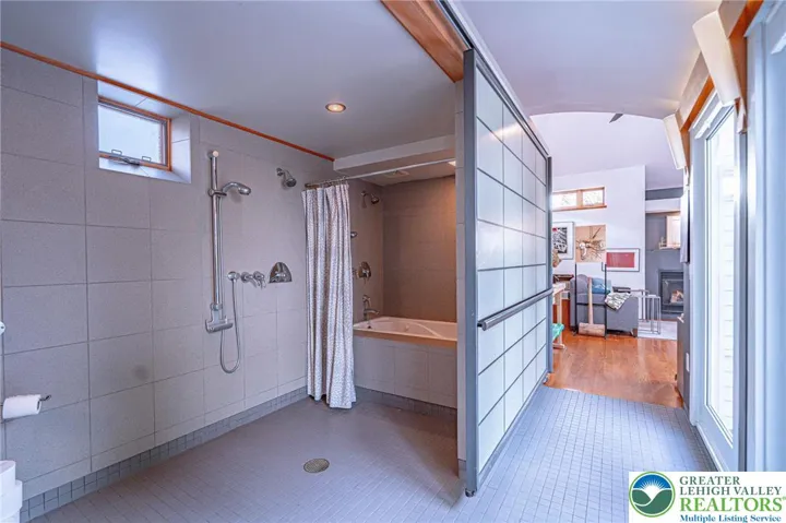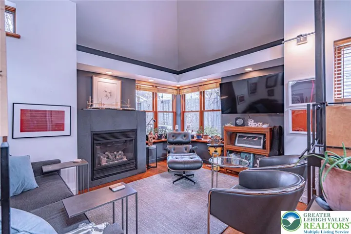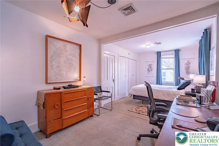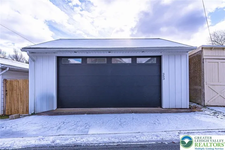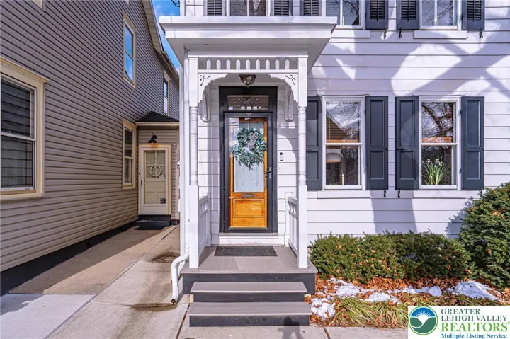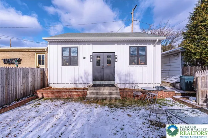 Tucked away in sought-after Historic Bethlehem, this charming 2-3 bedroom home has been lovingly cared for by long-time owners-both artists-who have enhanced the spaces with warmth and versatility. Sunlight streams through multiple windows while French doors lead gracefully from living room to dining room and into to a character-rich kitchen featuring slate floors and counters, large pantry and stackable washer/dryer both concealed behind handsome wooden doors. A thoughtful addition enhances the home providing a spacious, accessible bathroom with an oversized multi-jet shower & whirlpool tub set behind a frosted glass, barn-style sliding door. Just beyond, a stunning architectural space currently used as an artist studio and family room, can easily serve as a primary suite. An impressive 15.5' ceiling, HW floors & transom windows offer access to an outdoor oasis of private sitting areas and lovely perennial gardens, perfect for alfresco dining, creative pursuits or quiet relaxation. A detached 2.5-car garage offers rare off-street parking in the city. The second level offers two sizable bedrooms and a full bath while a recently renovated 3rd floor provides flexible space as an office or playroom. With its artistic roots, adaptable layout and unbeatable location just steps from shops, dining, culture and the Moravian Settlements' newly designated UNESCO World Heritage Site, this unique home offers an opportunity to live within one of the area's most significant neighborhoods.