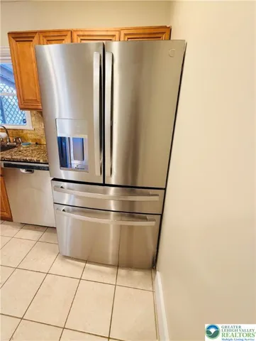 The kitchen provides ample cabinetry, granite countertops, tiled backsplash, and stainless steel appliances. A convenient first-floor bathroom adds functionality to the layout.
