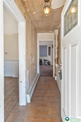 Welcome to a charming turn-of the century home in the heart of the Borough of Tamaqua. This single-family house offers 2,125 square feet of living space and features four-bedrooms bursting with potential and awaiting the right buyers to restore it its former glory. The large covered front porch welcomes you as you approach, offering a perfect spot for relaxation. Upon entering, you'll find a spacious living room with chair rail that leads to the dining room, and from there the layout seamlessly flows to the kitchen. The kitchen features oak cabinetry, generous counter space, a dishwasher, and copper tone-stamped backsplash. Both the kitchen and dining room provide access to the expansive back porch offering a peaceful view of the backyard. Completing the first floor is a versatile room that currently contains an open half bath. This space could be transformed into a fifth bedroom, with a suite, or repurposed for another use depending on your needs. As you ascend to the second floor, you'll find four bedrooms, one of which needs renovations and a full bath with claw tub. A notable feature on this floor is the walk-in-closet in the hall. Venturing to the third floor, you will find an attic with enormous potential to transform into additional living space. Other highlights include a new oil burner and boiler unit installed 2025 and taxes under $2,000 annually. Don't miss this chance to make this cherished Tamaqua gem your next dream home, schedule a showing today.