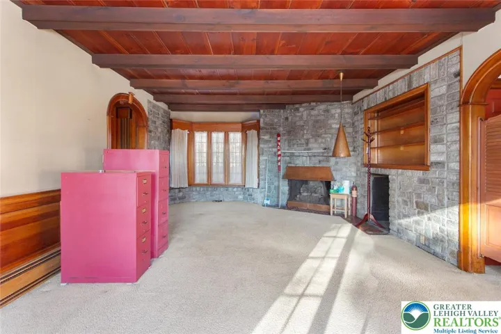 Unique opportunity to own of of Nazareth Borough's most recognizable homes on the most desirable streets in the borough. Large corner let with mature trees and plantings. All stone construction. Old World Charm throughout with hardwood floors, natural woodwork, coffered ceilings, mercer tile and more. Add your finishing touches to bring this classic home back to the showpiece that it deserves to be.