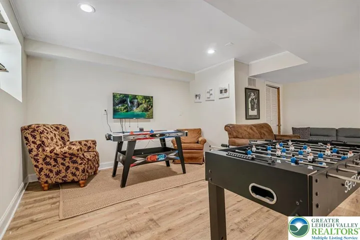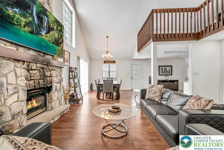 Whether it be a home to call your own or an investment property to help others feel at home, this property is one you don't want to miss! This 2-story brightly lit home offers nearly 3,000 square feet of beautiful living space situated on an acre of flat land. An added bonus is the wide array of amenities offered through the community including pools and beaches, a clubhouse, pickleball, tennis and basketball courts, and gated 24/7 security. Featured in this home are 5 brs, 2.5 baths, a beautifully lit living room area with a floor to ceiling stone gas fireplace, a loft area, and beautiful vaulted ceilings. The first floor contains a bright and open kitchen featuring granite countertops and white cabinets, which opens to the dining area, making it a perfect space for entertaining. Rounding out the first floor are the master bed and bathroom, a second bedroom and full bath, and a bonus room which can be utilized as you wish as a den, hobby, or office space. The lower level is where the fun happens! The current set up utilizes the space as a full-on game room, a space for entertaining and enjoying quality family and friend time! To add even more appeal, there are 3 additional BRs and a 1/2 bath located in this fully finished lower level. The outdoor space on this home offers covered porches surrounded by the peaceful serenity of the trees and plenty of land to play and explore. Located in the Poconos, you'll be close to ski resorts, shopping, dining, and water parks