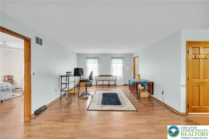 A rare opportunity to be the next owner of this 3000+ square foot, expanded Cape Cod style Home located in the Borough of Nazareth! Boasting 5 Bedrooms and 3 Full Bathrooms and sitting on a third of an acre, this bright, turn-key home has ample space inside and out! This beautifully kept home features a First Floor Master Suite, a front to rear kitchen and dining area, a 450 square foot family room and much more including a private office, sunroom, additional living area and an enclosed, heated porch which houses the first-floor laundry area. Upstairs is a full bath book-ended by 2 rooms on each side that can be playroom/bedroom combos or 4 bedrooms. The house is serviced by 3 zone heating and AC systems, public sewer and well water with an owned softener and reverse Osmosis system. The 2-car garage opens into the basement which lends to the possibility of expanding your living space. Outdoors, you'll find a raised Trex deck, paver patio with fire pit as well as another wood deck off the master suite access point. All overlooking a large, landscaped backyard. A Beautiful Classic in a most convenient location! SHOWINGS TO BEGIN SATURDAY, MARCH 7TH