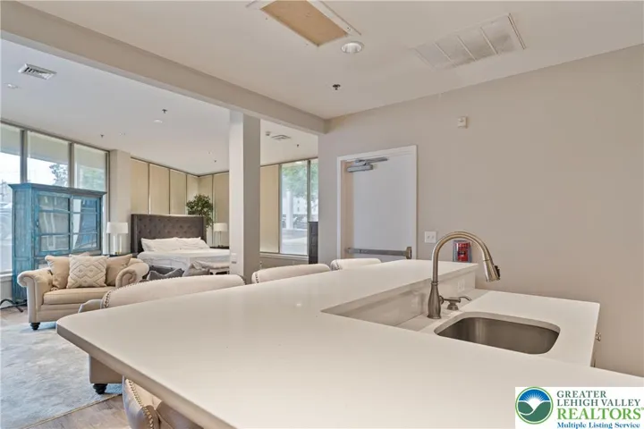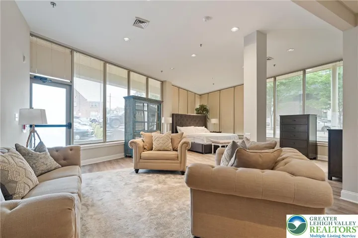 FULLY FURNISHED FIRST FLOOR STUDIO APARTMENT featuring tall ceilings, expansive glass windows, a separate private entrance, onsite assigned parking, and laundry is conveniently located in the building. This mixed-use property offers the added convenience of an on-site grocery store and is within walking distance of downtown Allentown. Situated across from the Da Vinci Science Center and just a short stroll to the PPL Center, Archer Music Hall, restaurants, and entertainment. Easy access to Route 22 and I-78, both within 15 minutes, makes commuting simple and is within minutes of Cedar Beach, Muhlenberg, and Cedar Crest College.