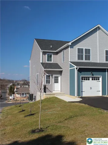 NEW CONSTRUCTION – 1ST LEVEL IN-LAW SUITE – JUST COMPLETED: This well crafted 2,350 square foot, end-unit townhome, with one car garage, is conveniently located merely 0.3 miles from I-78 (Exit-67; Hellertown). This exquisitely appointed home possesses an inviting, innovative floor plan of 4 bedrooms and 3½ bathrooms (1st floor has bedroom, study & full bath; private entrance), boasting 9’ ceilings (first and main floors), a gorgeous 19 x 14 designer kitchen (wide plank flooring, stainless steel GE appliances, granite countertops and pantry cabinet); primary bedroom (primary full bathroom with double sink vanity; 8 x 5 walk-in closet); second floor laundry; carriage house style garage door. Superior 2” X 6” structural wall construction, Energy Efficient R-21 wall / R-49 ceiling insulation and 14-SEER HVAC system.