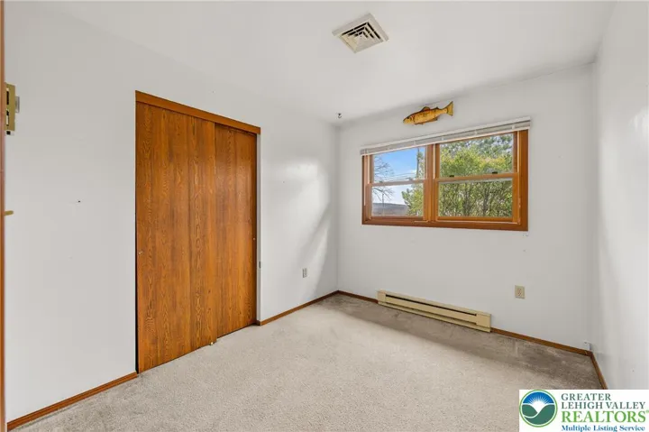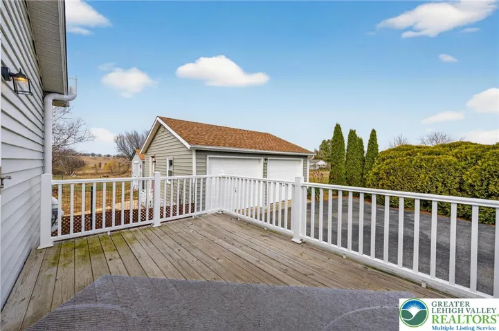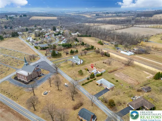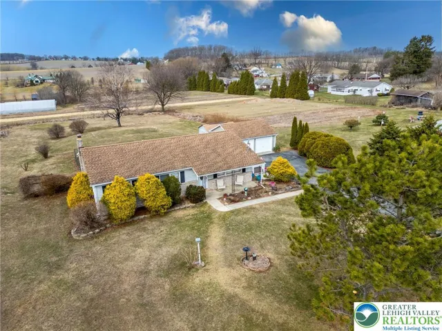 This 3 bedroom, 1 1/2 bathroom, ranch home in a semi-rural neighborhood on a 1 acre lot is just anxiously awaiting its new owner. The home features an eat-in kitchen with updated appliances and ample cabinet space, separate dining room with French doors to the sprawling backyard, large family room, three generously sized bedrooms (one with ensuite bathroom), full size basement with washer/dryer, wood/pellet stove and loads of storage shelving, a 2-car detached garage and separate storage shed. Baseboard electric heat in each room and central AC too (installed in 2023). Roof was replaced in 2011. Large, flat front and rear yard offers amazing, panoramic views. Located in Northampton school district with total taxes under $4500/year. Homes in this area at this price point don't tend to stay on the market long, so come see it before it's gone.