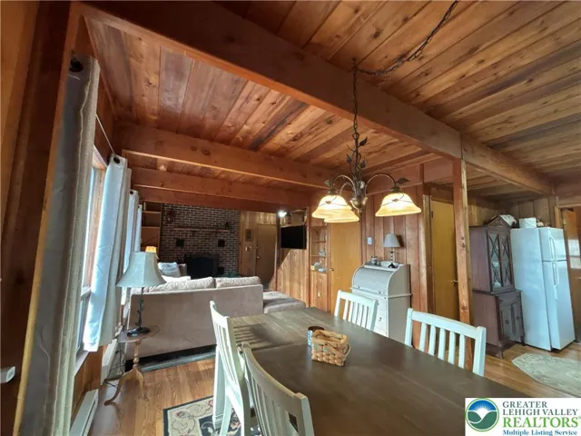 Escape to Locust Lake Village. Nestled on nearly half an acre, this 3-bedroom, 2-bath retreat perfectly balances lake life with mountain charm. The heart of the home features an airy, open floor plan anchored by a cozy fireplace, lofted ceilings, and expansive windows that flood the space with natural light.
