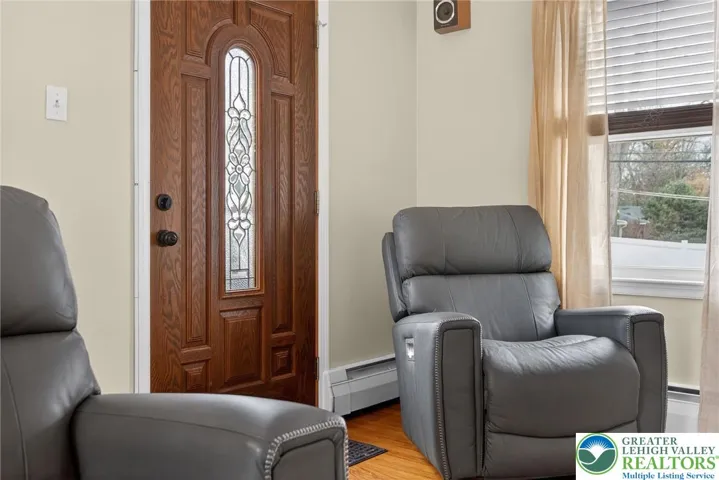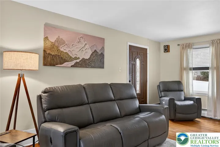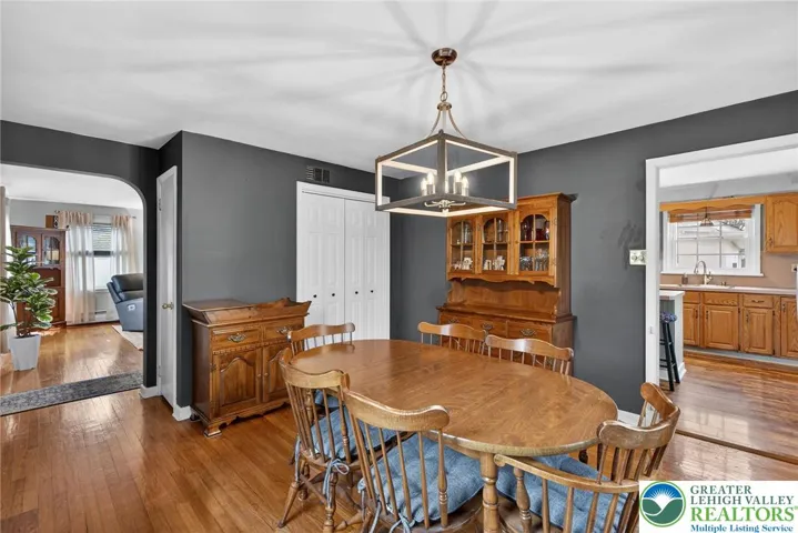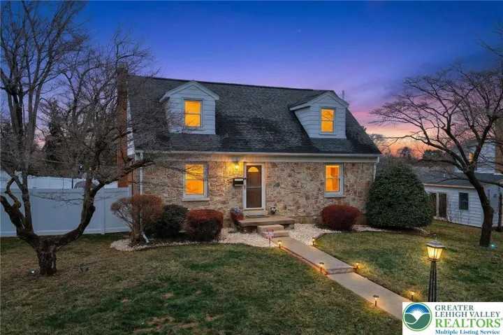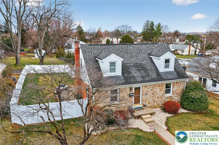 Charming stone and brick Cape Cod located in the desirable Hamilton Park neighborhood! This well-maintained home features hardwood floors throughout and spacious, sun-filled rooms full of character. The inviting living room includes an extended sitting area with access to the rear patio, perfect for relaxing or entertaining. The formal dining room with propane stove creates a warm and welcoming gathering space, while the eat-in kitchen offers abundant cabinetry, center island, and some newer appliances. The home includes three generously sized bedrooms and 1.5 baths, with a beautifully remodeled full bath offering updated finishes.