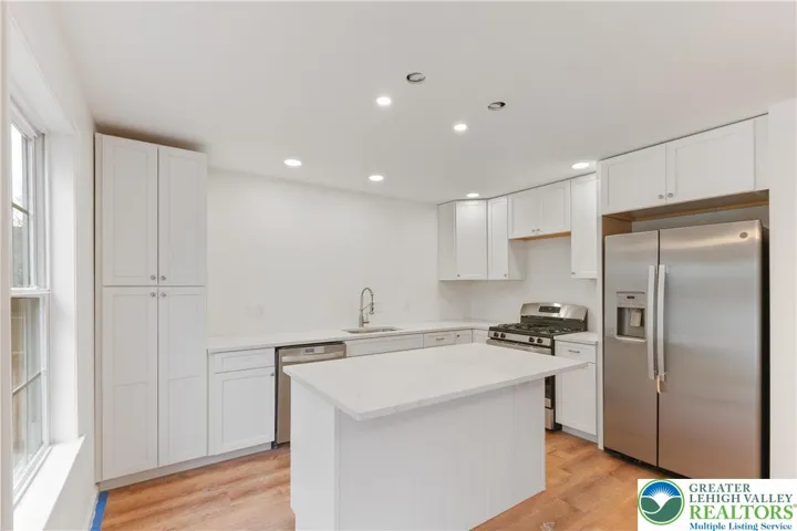 Welcome to 8014 Heritage Drive a beautifully remodeled townhome located in highly desirable Lower Macungie Township, within the sought-after East Penn School District in Heritage Heights. Every detail of this home has been thoughtfully remodeled, offering modern style and move-in-ready convenience with NO HOA. NEW flooring, NEW electrical, NEW HVAC System, NEW roof, NEW water heater and completely remodeled interior to accommodate an easy spring season move in. With its open concept layout and considerable closet space this home awaits your move! Living room equipped with built in gas fireplace, your NEWLY remodeled kitchen with kitchen island, QUARTZ COUNTERTOPS and NEW APPLIANCES meet your every need. Partially finished basement and full bathroom adds a great touch for entertainment space or additional family room/home office. As you approach the 2nd floor, enter in the comfort of your primary bedroom with half vaulted ceilings, uncover the benefits of a his & hers closet space. Just steps away a NEWLY REMODELED en-suite bathroom with double vanity. Experience the convenience of a second-floor laundry area, making everyday living easier and more efficient. Added bedroom LED lighting and ample closet space for everyone. Within the surrounding areas of Heritage Heights enjoy Lower Macungie's community park with paved walkway and soccer fields for year round enjoyment. Within close proximity of major highways such as route 100, 22 and PA Turnpike make commuting a breeze. Shopping centers, storage units, medical facilities are just minutes away! Look no further than 8014 Heritage Drive for your next move.