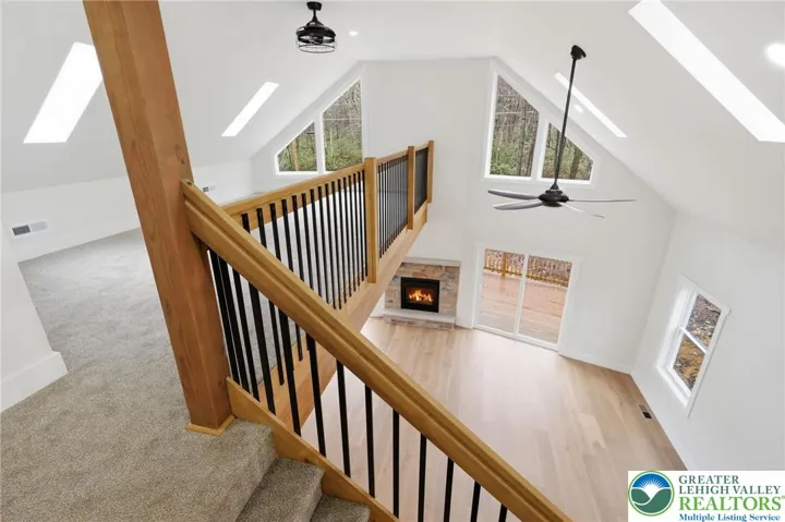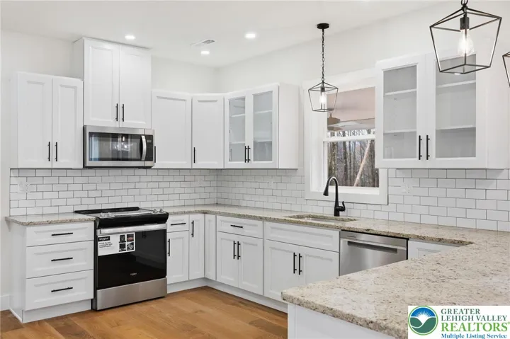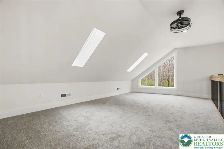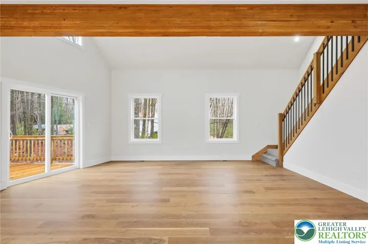 Gorgeous NEW CONSTRUCTION 3 Story Chalet w/ 4 bedrooms, 3.5 bathrooms, & attached 2 car garage on 1.05 acres in Pleasant Valley West! This beauty would make an amazing primary home, vacation home, or STR investment property! The great room showcases soaring cathedral ceilings, sleek hard surface flooring, propane fireplace, & open concept design. The gourmet kitchen features granite countertops, white cabinetry, & breakfast bar seating. Convenient main floor primary suite! Plenty of space for everyone with the 3rd fl loft & 1st fl family room. The sprawling 1st fl family room has an ideal layout for a lounge area & billiards room! Stay cool in the summer w/ central AC & comfy in the winter w/ forced air heat! 1st fl bonus room provides wonderful space to use as at at-home office or additional sleeping space for guests, with full bathroom easily accessible on the 1st fl! Plenty of storage & parking space in the attached 2 car garage! Enjoy the Pocono outdoors on the wraparound deck (w/ partially covered sitting area)! Minutes to hiking, biking, rafting, Hickory Run State Park, downtown Jim Thorpe, & more! Quick commute to PA-476 & I-80! See today!