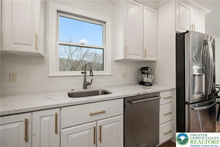 The main level flows seamlessly between formal and casual spaces. A SUNLIT LIVING ROOM and separate DINING ROOM provide ample entertaining areas, while the OPEN-CONCEPT KITCHEN and FAMILY ROOM with cozy FIREPLACE serve as the heart of the home. The recently remodeled kitchen features QUARTZ COUNTERTOPS, SUBWAY TILE BACKSPLASH, STAINLESS APPLIANCES, CENTER ISLAND, and generous eat-in space. Upstairs, the primary suite has tray ceilings, dual walk-in closets, and a SPA-INSPIRED RENOVATED BATH complete with SOAKING TUB, SEPARATE SHOWER, and DOUBLE VANITY WITH CARRERA MARBLE COUNTERTOPS. Three additional bedrooms and a full bath provide comfort and flexibility for family or guests. The FINISHED WALK-OUT LOWER LEVEL expands the living area with a built-in bar and opens to a paver patio framed by mature landscaping. Above, a spacious TREX DECK looks over the beautifully landscaped property and open views. Additional highlights include a SIDE-ENTRY TWO-CAR GARAGE, ample parking, and oversized utility shed for additional storage.