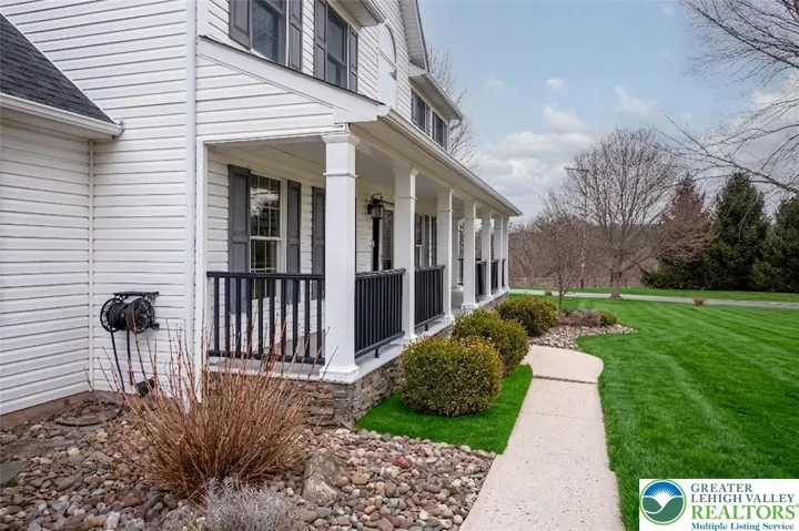 Set on a picturesque 1.18-ACRE CORNER LOT, this FARMHOUSE-INSPIRED 4-bed, 2.5-bath home offers refined country living in the heart of Upper Milford Township, moments from vibrant Emmaus borough. Thoughtfully updated, the home provides modern comfort and well-designed living spaces. From the moment you arrive, the classic WRAPAROUND PORCH creates a welcoming first impression—the ideal place to enjoy quiet mornings or sunset views over the surrounding countryside. Inside, the two-story foyer introduces fresh HARDWOOD FLOORS and an open staircase with wrought-iron accents, setting the tone for the home’s interior.