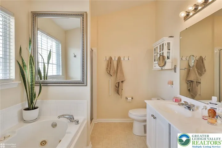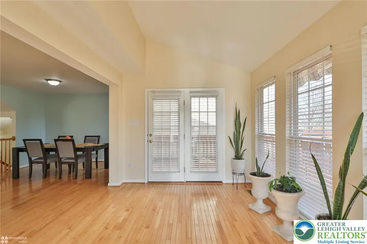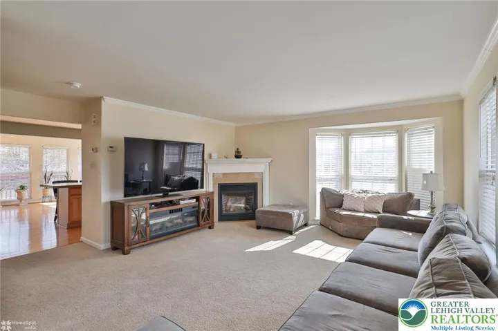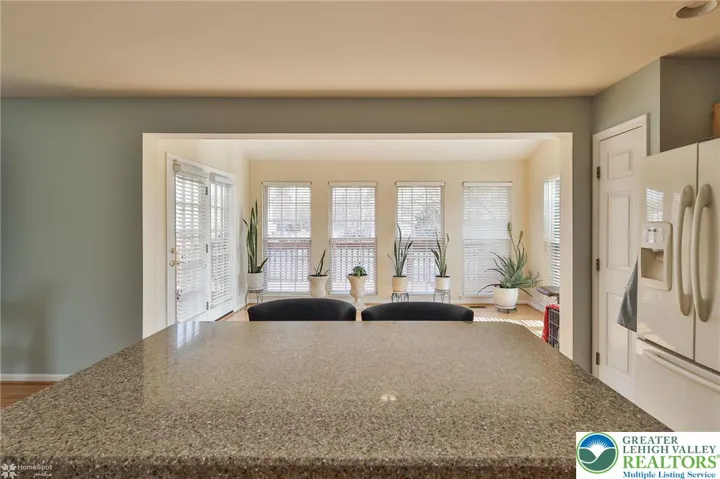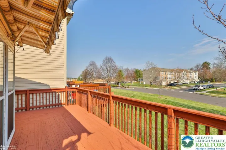 Presenting a well-maintained end unit, which is the largest among the three-story townhouse floor plans in the Countryside at Upper Saucon community within the sought-after Southern Lehigh School District. This residence offers optimal convenience, situated near shopping, restaurants, hospitals, and major commuter routes. The lower level includes a spacious recreation room enhanced by floor-to-ceiling windows, a pellet stove, and direct access to a semi-private stone patio. A large powder room and dedicated laundry area are also located on this floor. On the second floor, the layout is well-suited for daily living and entertaining. It features an expansive eat-in kitchen with granite countertops, hardwood flooring, and a sunroom filled with natural light from floor-to-ceiling windows. The adjoining deck off the sunroom is equipped with a retractable awning. The living room is distinguished by a corner gas fireplace and a bay window. The third level comprises a primary suite designed for relaxation, offering a soaking tub, vaulted ceiling, ceiling fan, and a substantial walk-in closet. Two additional bedrooms, along with a full hall bath, complete this floor. Recent upgrades include a new roof and hot water heater. Additional amenities feature the longest driveway in the neighborhood, easy access to overflow parking, and comprehensive HOA coverage, including the roof, lawn care, snow and ice removal, development streets, and common walkways—ensuring a low-maintenance lifestyle.
