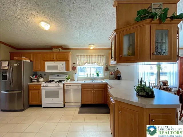 Welcome to 4185 Independence Lane in the desirable community of Heritage Village Northampton School District. Located in a pretty rural setting by the Blue Mountains, this immaculate ranch is the home you are looking for! This open concept 1404 sq.ft home is presented in pleasing tones with 3 bedrooms (one used as a family room) and 2 full baths. As you enter you are invited in to the expansive living space starting with the living room that features a picture perfect bow window and plenty of room to accommodate a large sectional. A lovely kitchen and eat-in dining area offers a generous amount of cabinetry, counter space, breakfast bar, tons of storage and view of the back yard. A fabulous work place to channel your inner chef. The primary bedroom has a walk-in closet and jack-n-jill full bath that opens to the laundry area/mud room. 2nd guest bedroom, full bath and a large 3rd guest bedroom or family room complete the interior. Enjoy your favorite beverage on your covered rear deck that is situated on a fantastic large lot giving plenty of room to entertain, host a BBQ or corn-hole competition with friends and family. This home has economical propane heat, central air, storage shed and 2 car off street parking Lot rent includes water, trash and maintenance of common areas. Homeowner has shared a few of her summer bloom pictures! Schedule your private tour today.