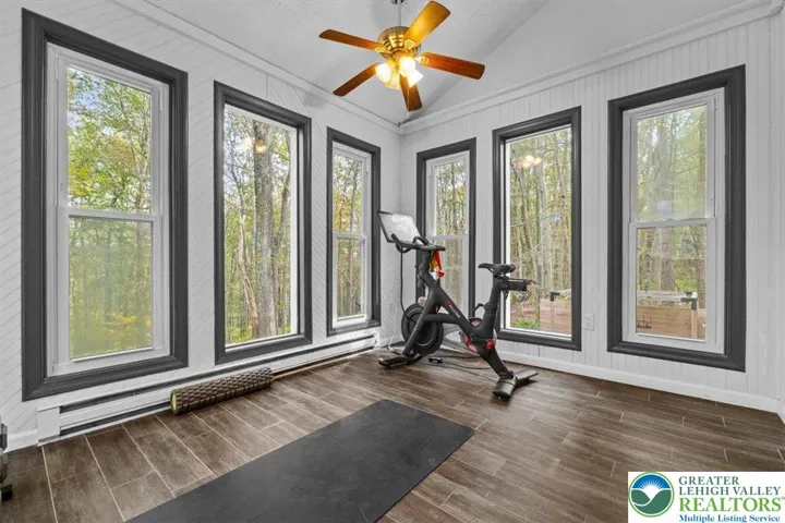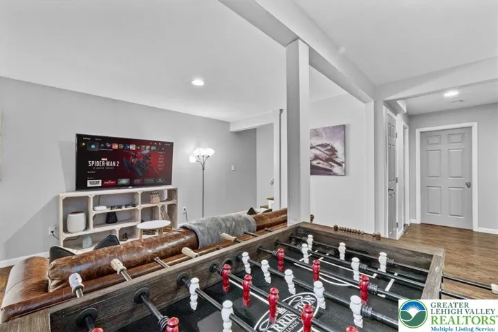 This MOUNTAIN RETREAT with OPEN CONCEPT and tons of room for your guests to enjoy including ENCLOSED PORCH for hot summer nights, living room with WOOD FIREPLACE to cozy up on a snow day, game room, outdoor spa with private sitting area. TONS of NATURAL LIGHS. Perfect addition to your investment portfolio or weekend getaway in the Heart of Poconos. Close to ALL MAJOR Pocono's attractions: Mt. Airy Casino, Kalahari Resort, Camelbeach, Aquatopia, Camelback Ski resort, state parks, water sports, hiking, fishing, hunting, horseback riding and so much more. Buyers are responsible to do their own due diligence for short-term rentals. HOA only $ 155 a year and very lot taxes. Backs out to Woodland Conservation. All furniture, decor negoitable.