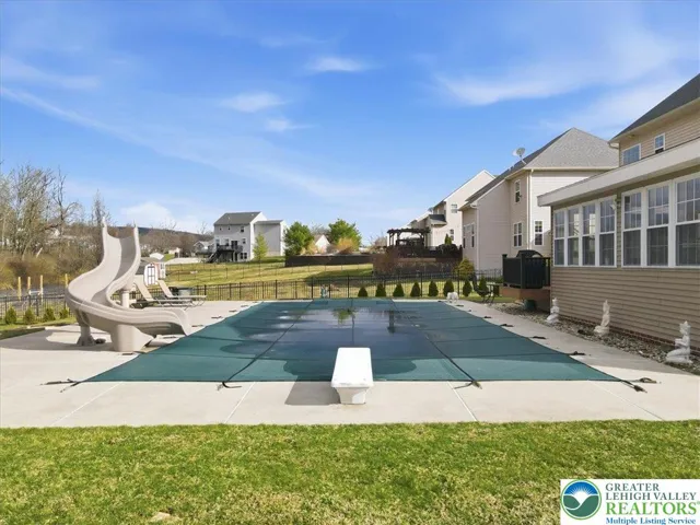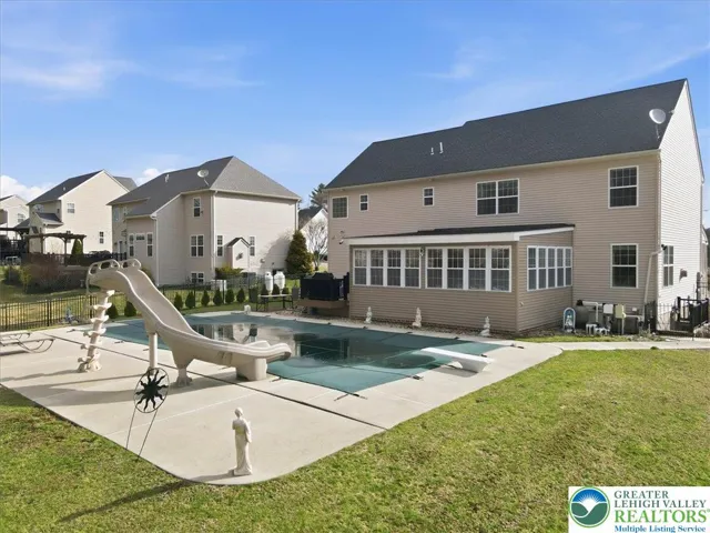 At the heart of this home is a true backyard oasis. The heated saltwater pool invites you to unwind, entertain, and create unforgettable moments all season long. Whether you're hosting summer gatherings or enjoying a quiet evening under the stars, this outdoor space delivers a resort-style experience right at home.