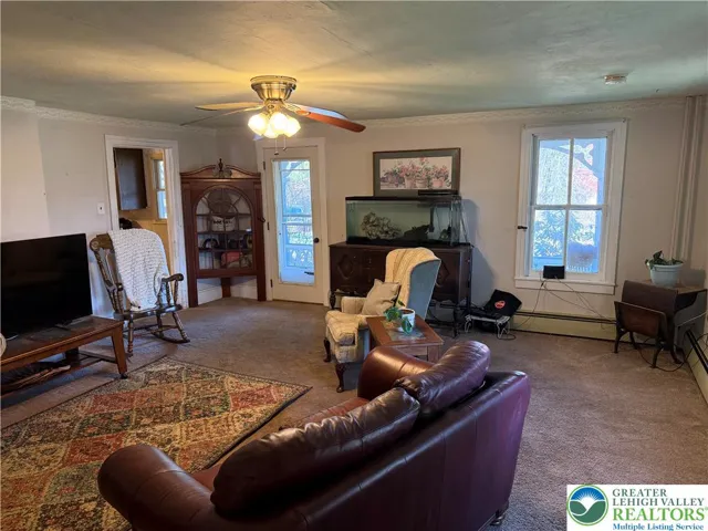 Looking for an "old-time" Farmhouse, Farmette, w/possible extended family quarters???? WELL, LOOK NO FURTHER! This 2600 ft, 1800's Farmhouse sits on a knob of 3.6, partially wooded acres w/own mountain-fed stream and clear-water pond! Clad in low-maintenance vinyl siding, w/some original Victorian woodwork, you enter from 1 of 3 entrances from the gracious, wrap-around porch. From the main entry, you will find a large Living Room, followed by a generous eat-in Kitchen w/breakfast bar, newer appliances, separate entry and access to the 1st floor Laundry and back staircase. Completing the main level, is a large, private bedroom w/TWO private entrances and TWO closets, PLUS a large, FULL BATHROOM w/double sinks! Via the main staircase, you will find an "Owner's Bedroom" w/Sitting Room & closet, 3 generously sized Bedrooms, ancillary 6th Bedroom/Office/Study (walk-through to bath), AND another generously-sized Full Bath w/linen closet!!!! Additionally, this home features a FULL walk-up attic for storage, AND a FULL walk-out basement! Outside, find a lovely lawn area w/existing chicken coops, whole house generator, play set, screened in gazebo and lovely plantings amidst stone walls and stairways, all overlooking the pond and stream, 1-car garage and plenty of driveway parking. Book your showings NOW!!!