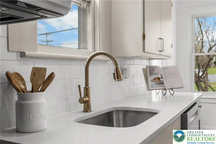 This single family home in Nazareth School District with low taxes has undergone a complete top-to-bottom renovation featuring high-quality finishes, modern upgrades and meticulous attention to detail. Luxury vinyl plank flooring throughout the entire home and neutral wall color will make carrying your own design theme a breeze. Enjoy the gorgeous eat-in kitchen which offers brand new quartz countertops, stainless steel sink with updated plumbing, new recessed lighting, stylish light fixture and high end gold finish cabinet hardware and gooseneck faucet. A brand new stainless steel appliance package includes a french door refrigerator, glass top electric range, low profile built in microwave and dishwasher. The living room boasts a large bay window for lots of natural light and new recessed lighting. A new modern light fixture creates a stunning focal point in the dining room. The fully renovated bathroom includes a new vanity, new tub, shower system, new light fixture and toilet. Extra touches like the marble style ceramic flooring and built in storage shelves show the thought and care that went into designing this home. You will appreciate the convenience of the rear entry mudroom with stylish checkered ceramic flooring as a place to drop and organize your shoes and jackets, keeping the living space clutter free. The second floor provides four bedrooms with all new flooring and smart ceiling fans with lighting. The primary bedroom offers new recessed lighting and a dimmable ceiling fan light. The entire home has been fitted with updated electrical outlets and light switches and a brand new electric service entry cable. The exterior has been freshly painted and a high efficiency HVAC system was installed in August of 2020. You will certainly enjoy spending your days and evenings in the screened in rear porch and beautiful fenced rear yard. There is lots of space for storage in the large double door shed and the single car garage with new garage door and bonus carport. But wait- that's not all! The Lower Nazareth Township Park which provides a playground, tennis courts and basketball courts is right across the street from the rear of this property. Close to shopping, dining, medical facilities and highway access. Don't miss the opportunity to snag this beautiful home- schedule your showing today.