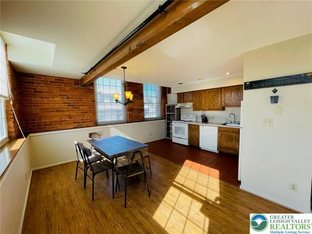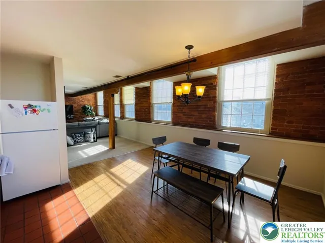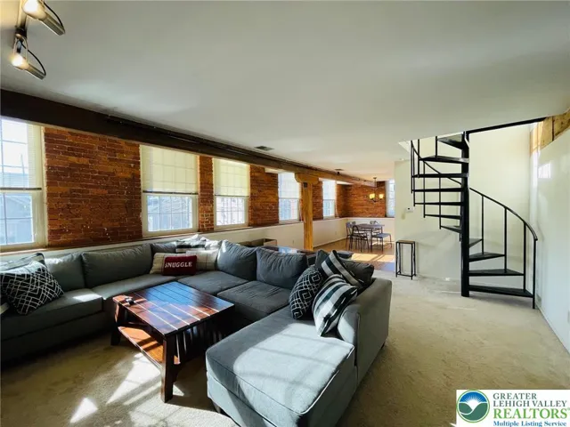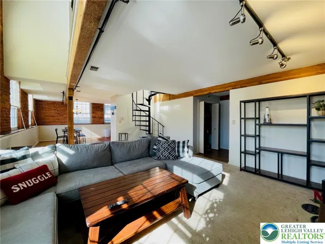 Swanky Dery Silk Mill Apartments located in the heart of Catasauqua. Situated by a stream this Historic building presents open concept apartments that are beautiful as well as unique presenting great space. Located on the 2nd fl. this beautiful corner 2 story unit has open concept living room, dining area and kitchen. A spiral staircase leads to your upper level with a loft style open master bedroom, full bath and guest bedroom. These great apartments offer modern touches with period details including gorgeous exposed brick walls, beamed ceilings, tall windows and lots of natural light. Unit has central air with efficient electric heat pump and dishwasher. Secured access to building with off street parking. On-site laundry facilities on both levels. Conveniently located close to all major highways, shopping areas, hospitals and minutes from LVAR Airport. Non-smoking building. Landlord accepts cats with extra monthly fee. Rent includes water, sewer & trash. Schedule your private tour.