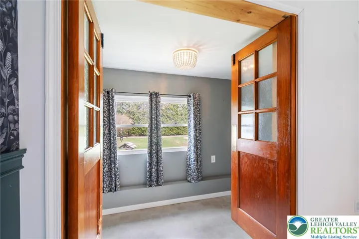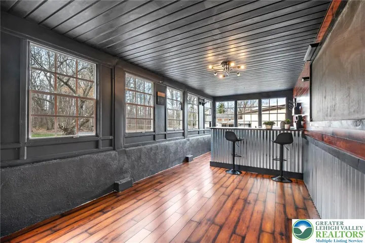 Set on a spacious, tree-lined lot in Moore Township within the Northampton School District, this expansive ranch offers a rare blend of space, flexibility, and outdoor living. A long driveway leads to a detached two-car garage, while the wide-open yard provides endless possibilities for recreation, entertaining, or simply enjoying the privacy of the setting. A pergola-covered patio area add both charm and functionality to the outdoor space. Inside, the home features a wide, flowing layout with multiple living areas designed for both comfort and versatility. The main living space is anchored by a wood-burning stove, creating a warm focal point, while updated flooring and abundant natural light carry throughout. The kitchen is centrally located with abundant cabinetry, stainless steel appliances, and a large island that opens seamlessly to the dining and living areas—ideal for gatherings and everyday living. A standout feature is the enclosed sunroom with custom bar area, offering the perfect space to entertain, unwind, or create your own private retreat. The flexible floor plan includes multiple bedrooms, including a spacious primary suite with a custom closet system. Two full bathrooms have been updated with modern vanities and fixtures, offering a clean, move-in-ready feel.