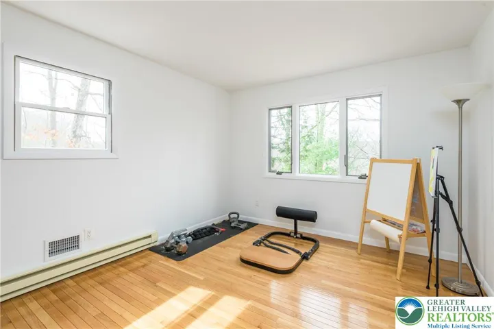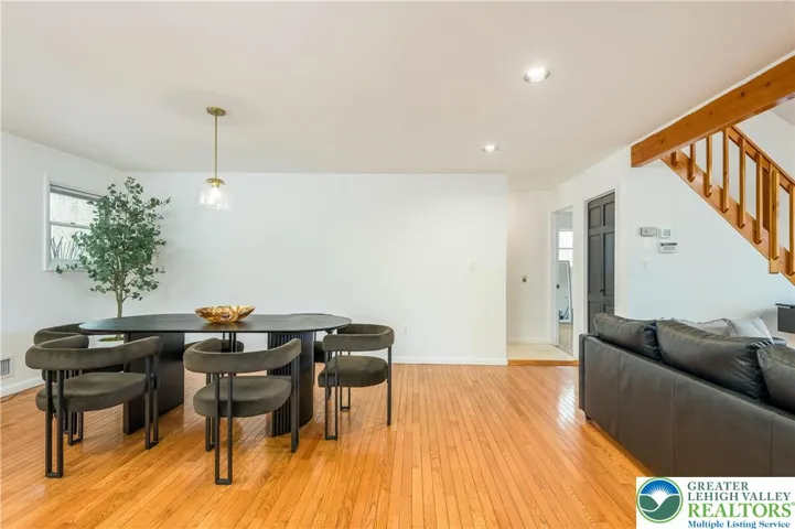 Welcome to this spacious 5 bedroom, 3 full bathroom home located in the desirable Saw Creek Estates community! Featuring beautiful wood flooring throughout, this home offers both comfort and functionality with a well designed layout. Step through the front door into a bright and inviting living room with soaring ceilings and a cozy wood burning fireplace, creating a stunning focal point. The open flow leads seamlessly into the dining area, perfect for entertaining. Just beyond, French doors open to the kitchen, which boasts stainless steel appliances, tile flooring, a center island with seating, and a large pantry for ample storage. The main level also includes a full bathroom and a convenient laundry room. Upstairs, the expansive primary suite features vaulted ceilings with a skylight, a walk in closet, and a luxurious en-suite bathroom complete with a double vanity, soaking tub, and separate shower. The upper level also offers a versatile loft area, along with three additional generously sized bedrooms and another full bathroom. Additional highlights include a two car garage with direct access into the home. Located in a gated community with MANY great amenities as well as a quick drive away from Bushkill Falls!
